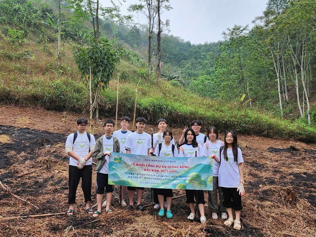 In April 2025, I joined Eco Wander’s Forestation Project in Bac Kan Province, part of the campaign “Rediscovering the Green of the Forest.” Together with local residents, forest rangers, and volunteers, we planted new trees to restore damaged land and rebuild the region’s natural ecosystem. Watching the first green sprouts rise from the soil, I realized that every small seed we planted carried not just life, but the hope of a more sustainable tomorrow.