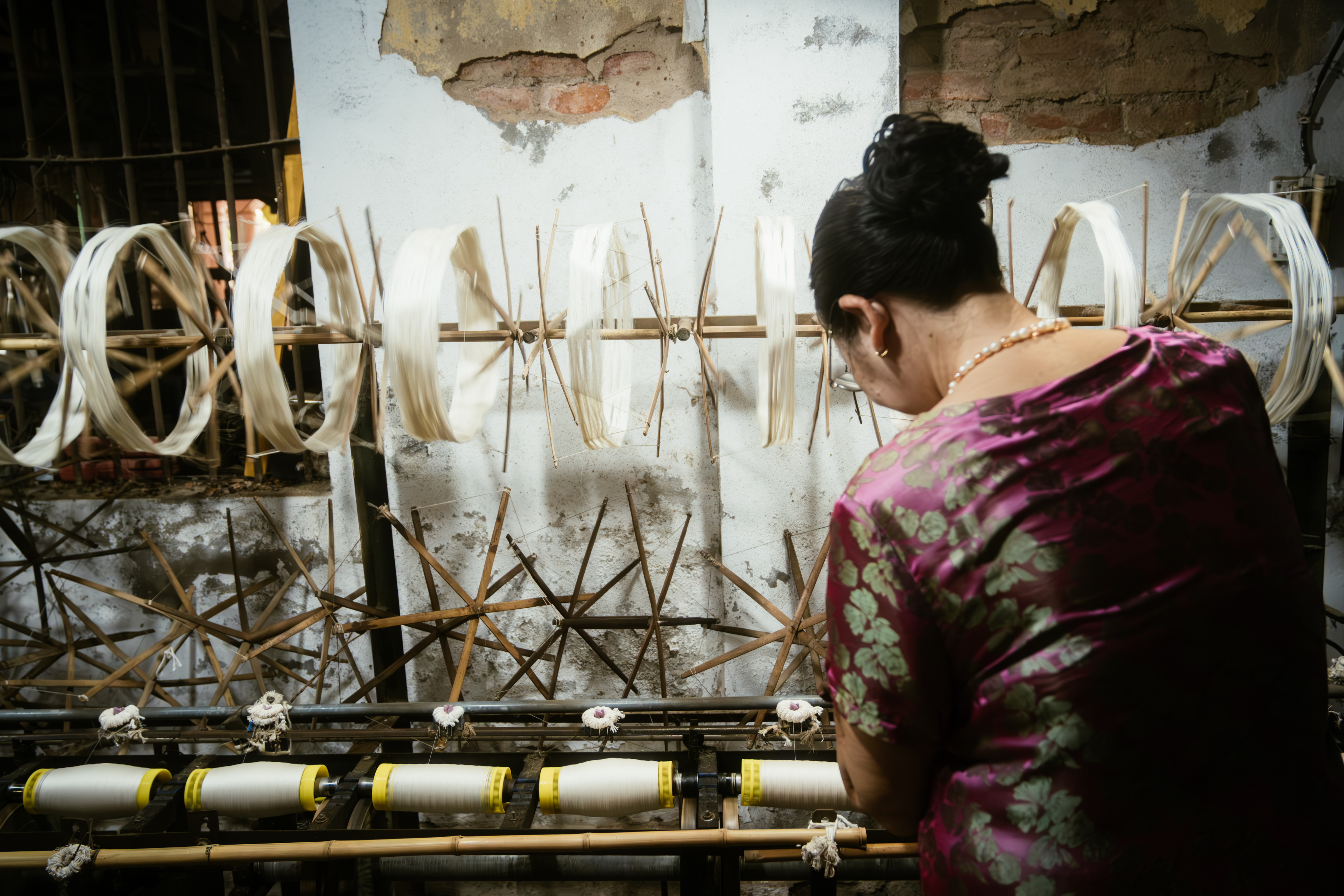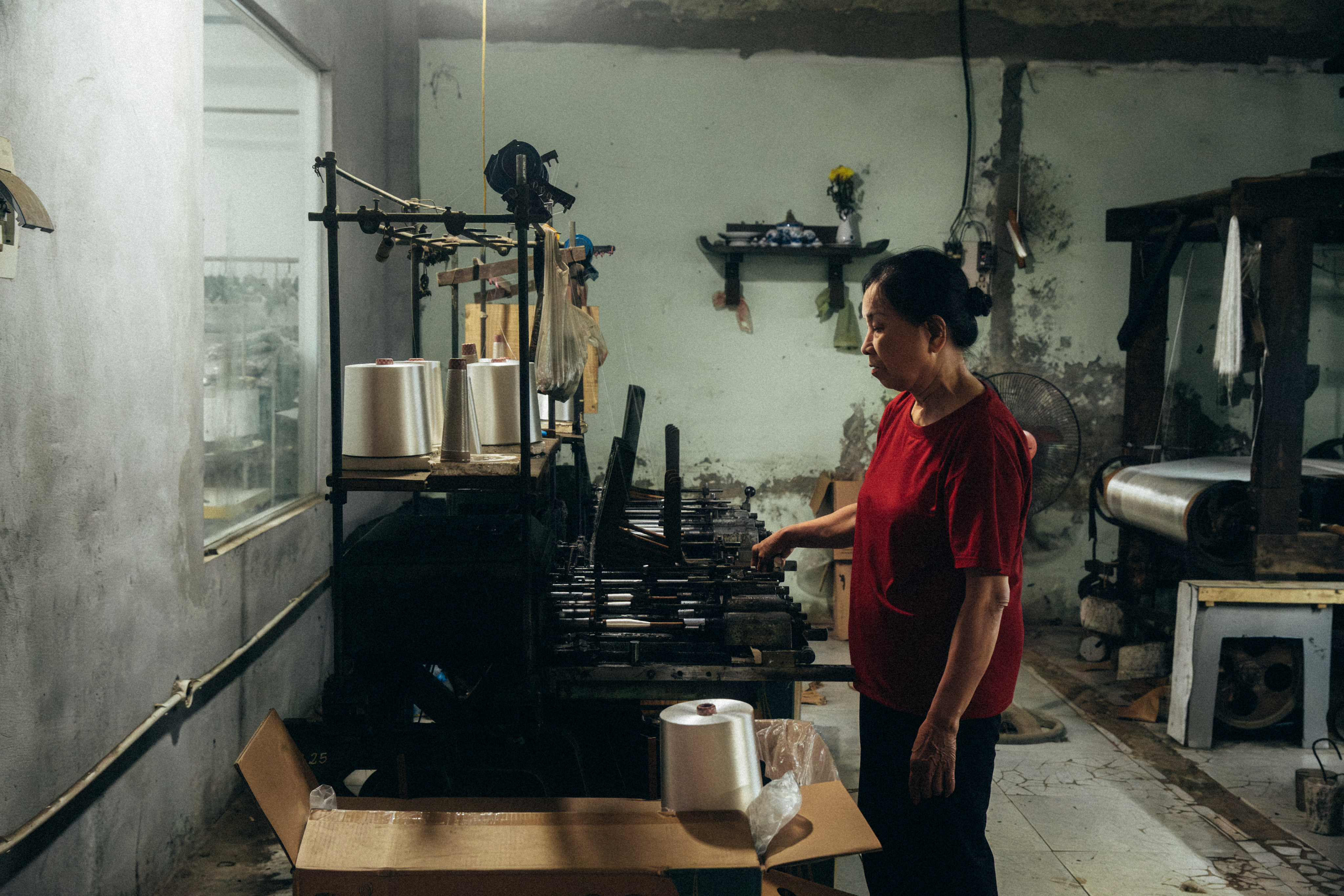 During a visit to my grandparent’s, I came across Vạn Phúc, a village traditionally associated with silk weaving. Intrigued by the vibrant atmosphere and the rumbling noise coming from the village, I decided to document the process of silk-making.