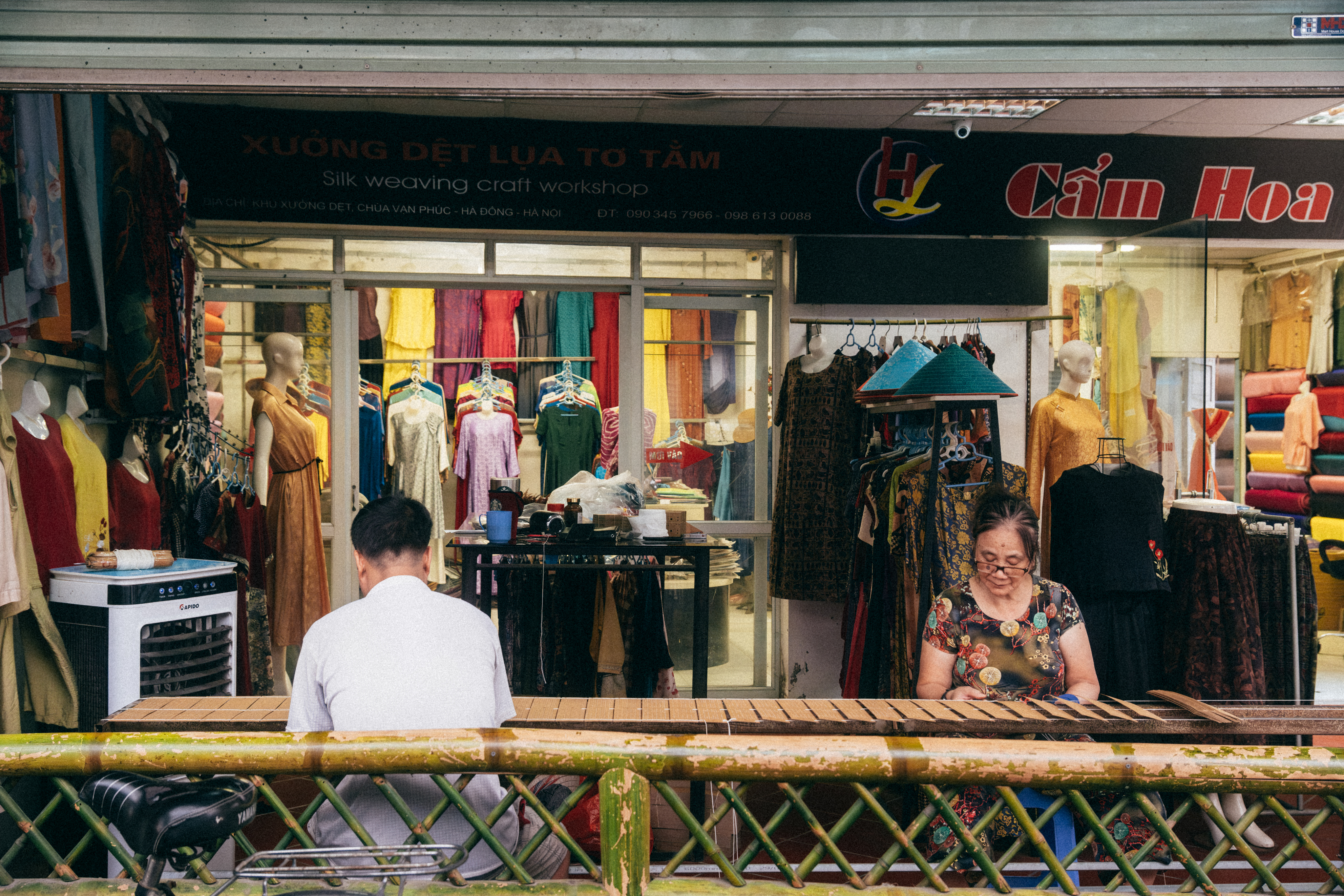 Through my lens, I captured the delicate balance between craftsmanship and culture. From artisans carefully threading patterns to vivid fabrics being laid on shelves ready to be sold. These photographs reflect on the timeless beauty of Vietnamese Arts and Crafts and the quiet dedication of the people who keep it alive.